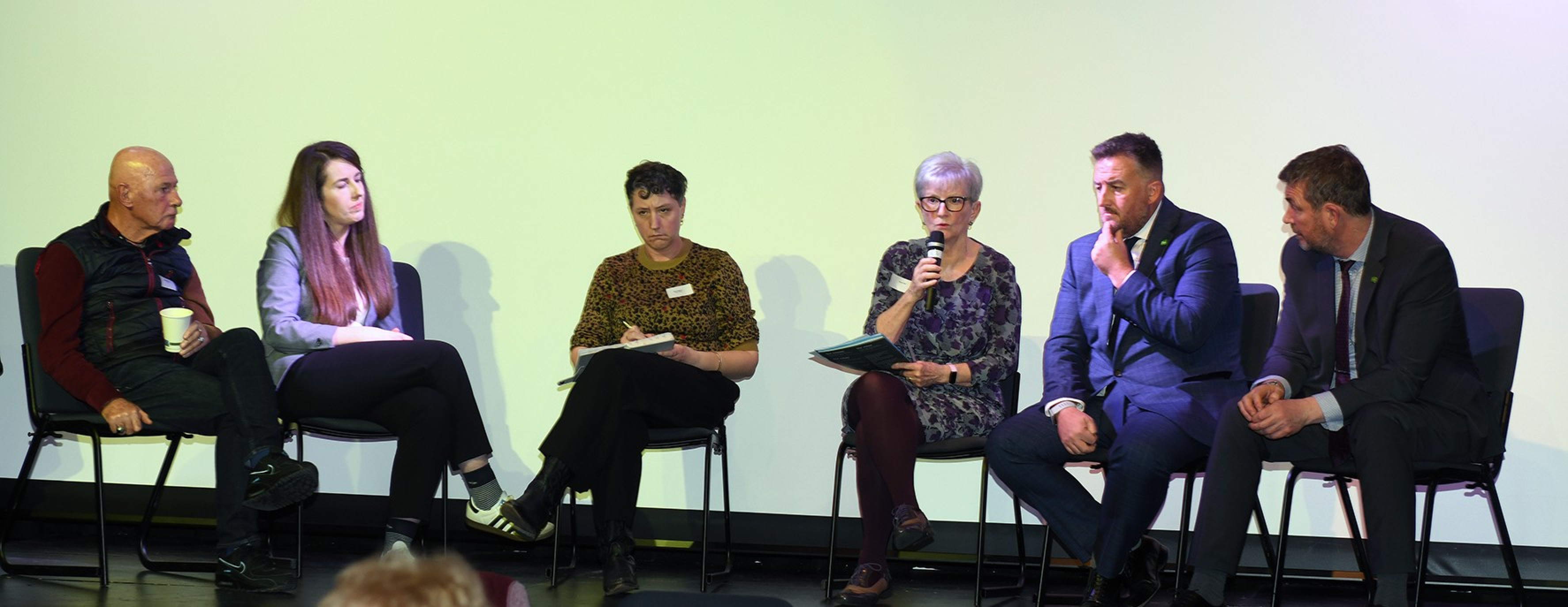 The panel featured Mark Byrne, CEO of Woking and Seam Beares Hospices; Shauna Mulligan, Director of Irish Community Services; Ellie Rogers, CEO of Leeds GATE; Bernárd Lynch, former Priest and LGBT activist; and Brian Dalton CEO Irish in Britain.